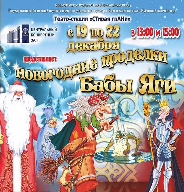 6+Новогодние проделки Бабы Яги 19 Дек, чт13:00от: 250 руб.Центральный Концертный Залг. Краснодар, ул. Красная, 5Посмотреть на карте ✭ Билет не надо распечатывать✭ Билет не надо обменивать в кассе✭ Билет достаточно предъявить на экранеИнтерактивное музыкальное Новогоднее представление# Детям от 2-9# Детям старше 9# Шоу