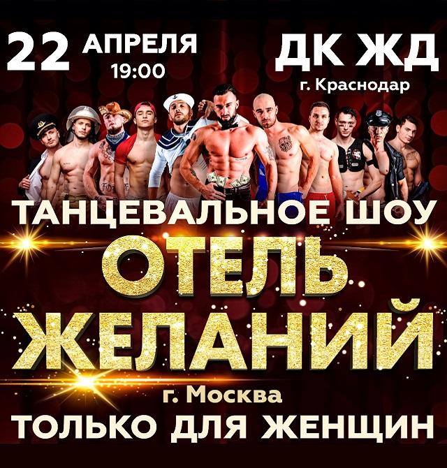 Прекрасные дамы, настало время устроить незабываемый вечер! Одиннадцать красивых парней унесут вас в мир грёз и откровенных фантазий. Шоу «Отель желаний» - это крутая хореография, отличный юмор на грани фола, зажигательная музыка, сексуальные тела молодых красавчиков. Эти парни покажут всё, ну или почти всё! Наше шоу не только танцевальное, но и интерактивное, все зрительницы станут участниками действия. Будьте готовы воплотить свои самые сокровенные мечты. Что ещё нужно, чтобы вечер был сногсшибательным?? Главное, запомните: всё, что было в «ОТЕЛЕ ЖЕЛАНИЙ», останется в «ОТЕЛЕ ЖЕЛАНИЙ»!!!