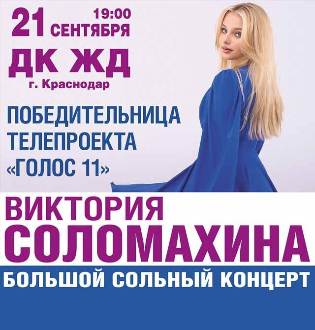 0+Виктория Соломахина 21 Сен, чт19:00от: 800 руб.Дворец культуры железнодорожниковКраснодар, пл. Привокзальная, 2Посмотреть на карте ✭ Билет не надо распечатывать✭ Билет не надо обменивать в кассе✭ Билет достаточно предъявить на экранеБольшой сольный концерт# Поп / эстрада
