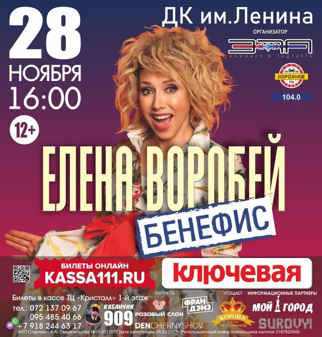 Очень популярная и известная актриса и юмористка, Заслуженная артистка России. Она особенно полюбилась и запомнилась зрителями после пародии «Возьмите меня». Елена Воробей по праву считается одной из самых ярких артисток пародийных и других юмористических жанров.