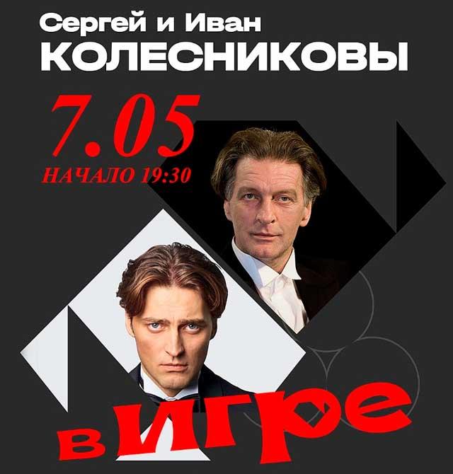 Литературно-музыкальный спектакль «Вся жизнь в игре» - это творческий альянс отца и сына, талантливых актеров заслуженного артиста РФ Сергея Колесникова и Ивана Колесникова. Яркие диалоги позволят задуматься о простых жизненных ценностях, о красоте человеческих отношений, о роли женщины в жизни мужчины, а калейдоскоп песен и поэзии обволакивает зрителя и дарит массу позитивных эмоций, добра, тепла, нежности...